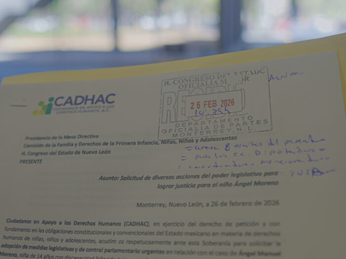 Más de 38 mil personas han firmado ya una petición en Change.org, sumándose a la exigencia ciudadana de justicia para Ángel y de transformación estructural en el sistema de protección a la niñez. La sociedad civil está exigiendo. Es momento de que el Estado responda, por ello, este día se dio cita Pablo Quiroga Coordinador de CADHAC, en Oficialía de Partes del Congreso Local y Palacio de Gobierno donde se presentaron las 38 000 cartas que demandan justicia para Ángel Moreno. El llamado busca, al igual que la recomendación de la CNDH, que se esclarezca el tema y haya cárcel para las personas responsables, además de que se apruebe la Ley Ángel que busca mejoras en el resguardos de niñas y niños bajo custodia del DIF Nuevo León y Capullos.